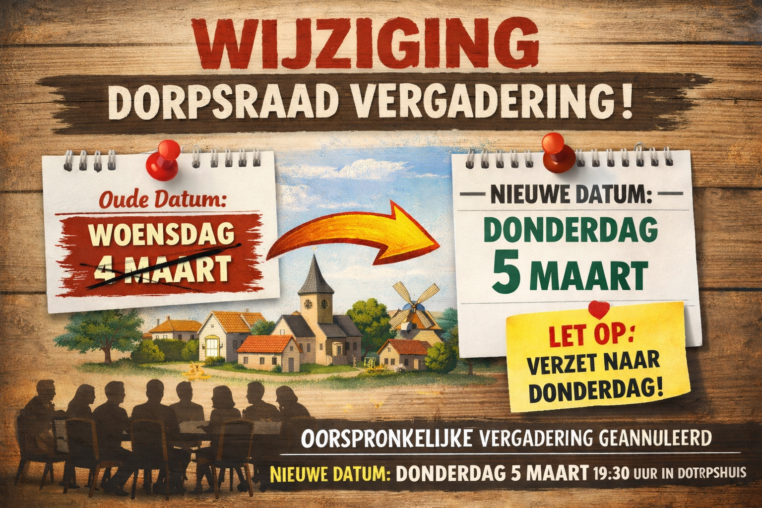 De geplande openbare vergadering van de Dorpsraad op woensdag 4 maart is gewijzigd naar donderdag 5 maart waar tevens het onderwerp Wagenberg Kiest als thema besproken zal worden. Aanvang 19:30 uur en de locatie is Dorpshuis Plexat Kerkstraat 22 Wagenberg (bovenzaal).
